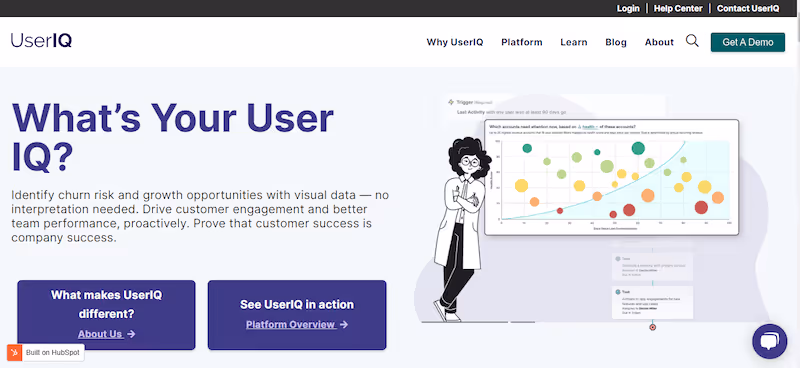 UserIQ is more similar to Pendo, WhatFix and Walkme. But rather than focusing on user onboarding flows, UserIQ focused on in-depth analytics, customer health scores, NPS, etc.