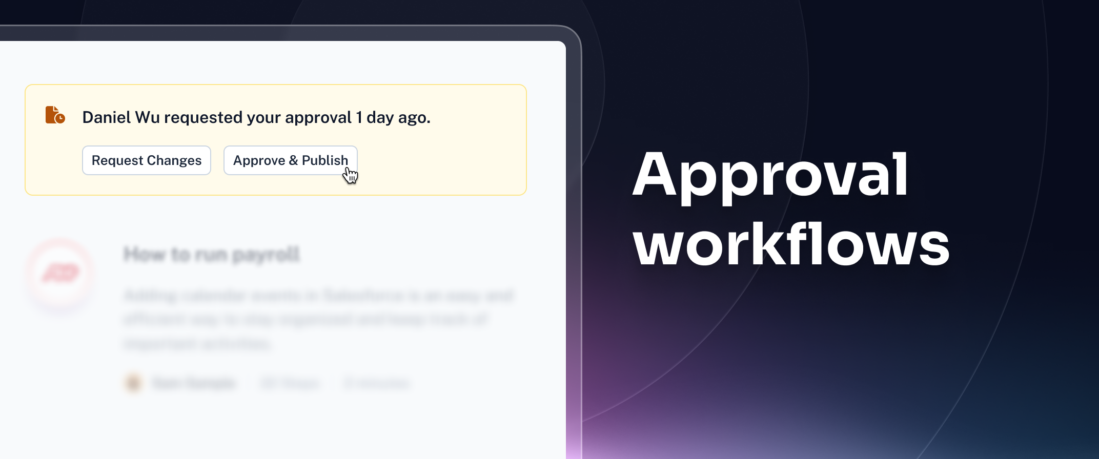 Organizations can now require every update to complete a formal review before going live. When approval workflows are enabled, no newly created or edited guides go live until they’ve been explicitly approved by a Team Admin. This new step builds compliance into the publishing process, turning quality assurance from a best practice into a built-in safeguard. The result: reduced business risk.