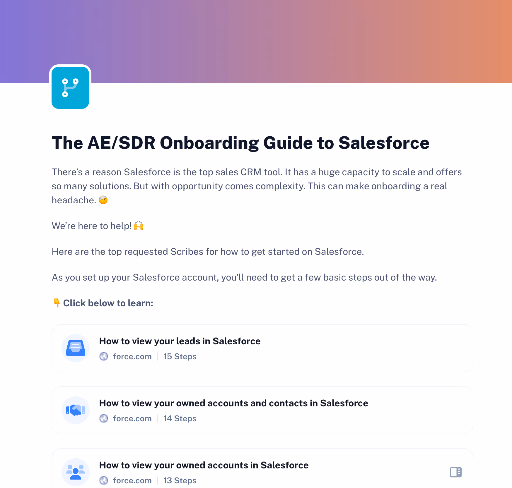 ‎Organizations use Scribe across a wide range of use cases, like onboarding and training employees, creating standard operating procedures and answering support queries from customers and stakeholders.