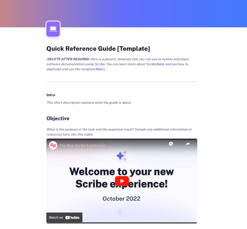 This template gives you a framework for creating clear and concise quick reference guides that can help improve communication and efficiency.