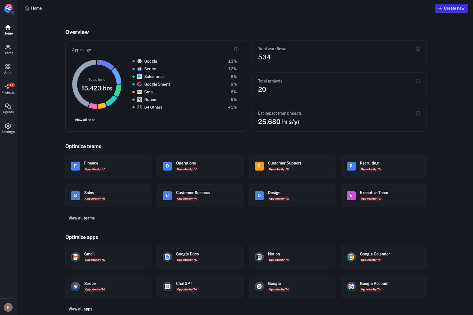 Instead of just documenting what is, Optimize builds smarter systems by identifying where manual processes can be replaced with automated ones, or even just sub-optimal workflows that are slowing your team down. By surfacing these insights objectively, you can get a clear picture of where your team’s at.