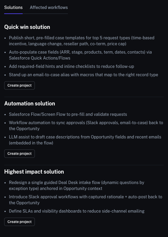 - Actionable Solutions: Specific recommendations, such as implementing Salesforce Quick Actions or template libraries.