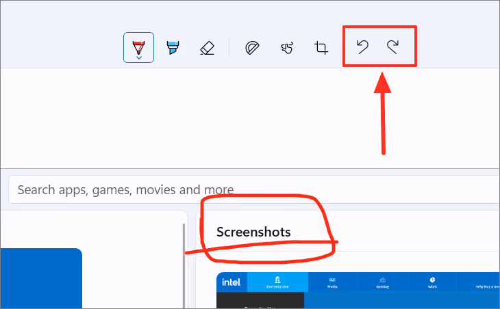 - Click on the ballpoint pen icon (highlighter or pencil) to write on the screenshot.