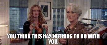 My favorite example is a scene from The Devil Wears Prada (I've seen it over ten times) where Miranda Priestly explains that the plain blue sweater Anne Hathaway is wearing traces back to a deliberate choice at a fashion house, several seasons prior, trickled down until it looked ordinary. I think about that constantly. Everything gets remixed. What's the origin of this? What's the version before this version? Taste isn't built on a screen. It's built everywhere else, and then brought to the screen.