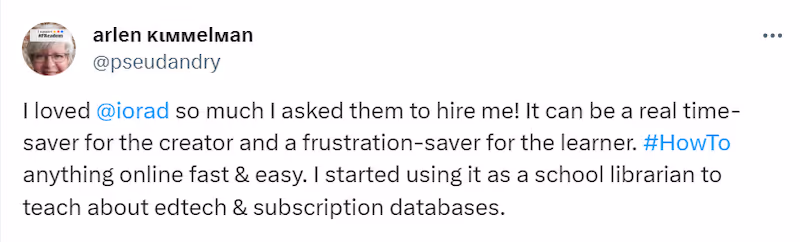 “I love that I'm able to create training materials so quickly and easily. All I have to do is turn on the extension, and then I can just click through a few steps and create an amazing training resource for my time.