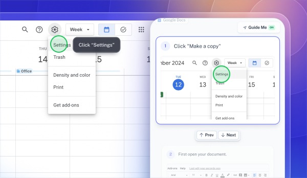 When a user is stuck, they don't have to leave the tool to check a manual. By clicking "Guide Me," Scribe provides Click Targets to the user directly in their browser. These are little circles that highlight exactly where to click in real-time within the actual software.