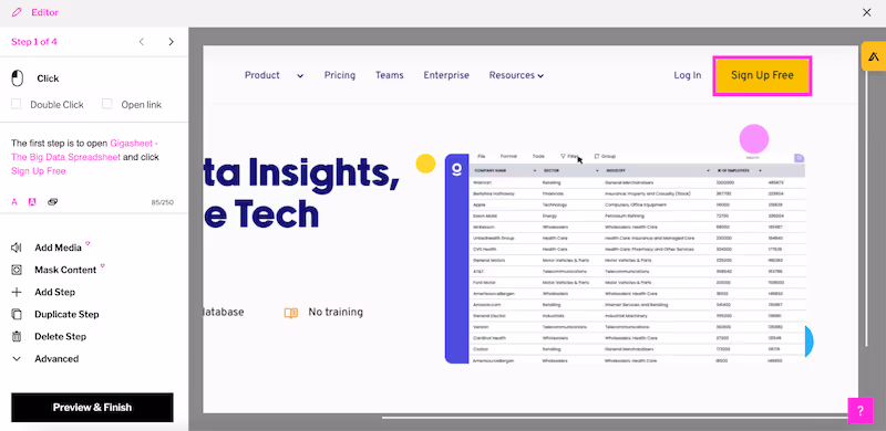 On the other hand, if you want an easy-to-use, wallet-friendly option that documents processes in the form of visually-appealing step-by-step guides, and offers a wide range of customization and editing features, then opt for Scribe.
