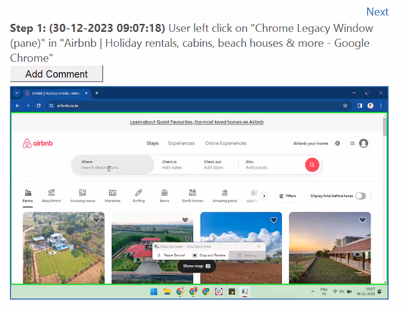 The tool captures your mouse clicks and explains the action in detail. You can also add comments for any step to include more context. Then, save this document as a ZIP file and share it with the IT team or a support executive to resolve the issue.