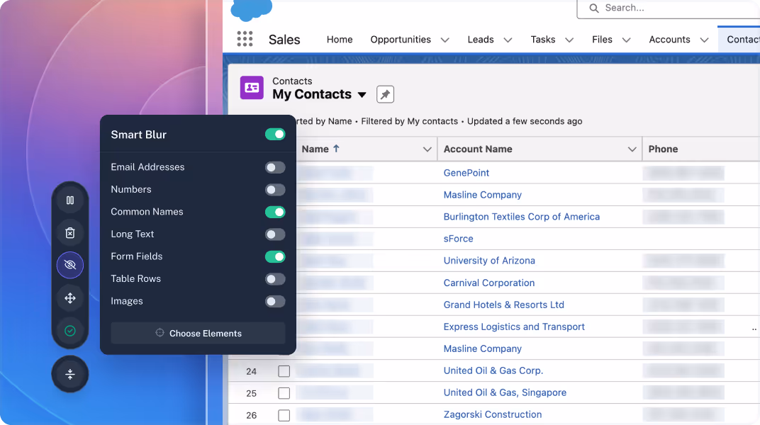 If Smart Blur does miss a particular element you need to blur, just select “Choose Elements” to select more. This blur will persist as long as the item remains visible on the screen.