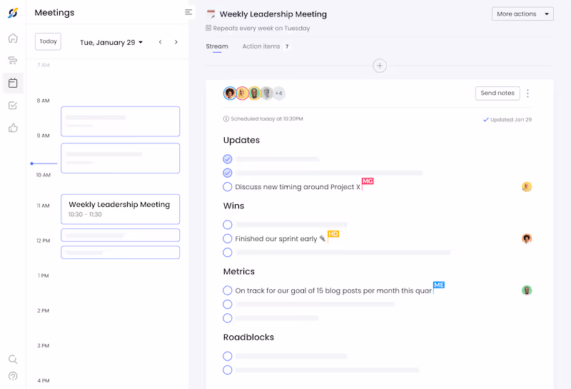 Fellow is an innovative meeting management software equipped with a variety of collaboration features. It enables users to conduct one-on-one meetings, assign tasks during sessions, and receive valuable feedback.
