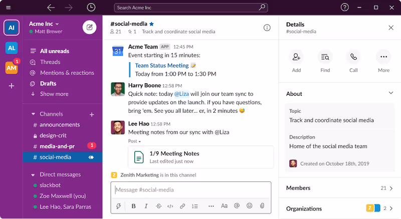 • Collaboration tools, such as comments, file sharing, and @mentions.