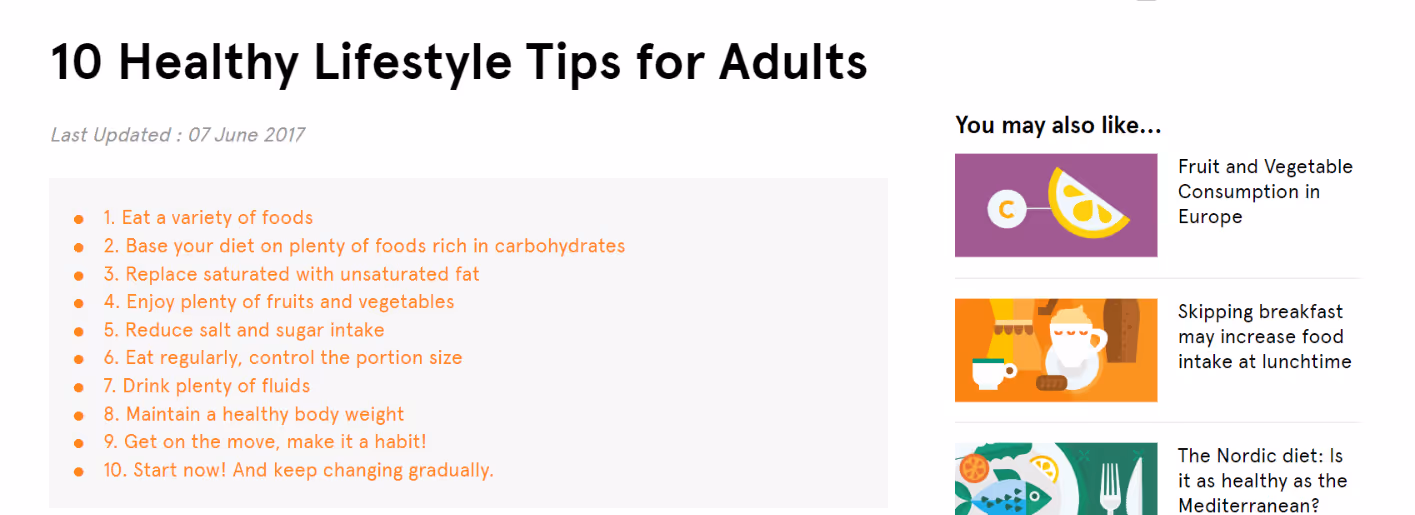This post by Eufic, titled "10 Healthy Lifestyle Tips for Adults," gives information that is both succinct and helpful regarding how to live a healthy life.