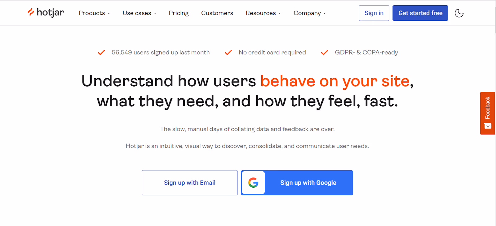 Like its tagline says, Hotjar’s Observe, Ask and Engage tools provide "insights into everything you ever wanted to know about your website, but your analytics never told you." This simply means that Hotjar explains the "why(how users behave on your site, what they need, and how they feel)" behind your customer satisfaction levels, so you can identify your weaknesses and map out areas of improvement.
