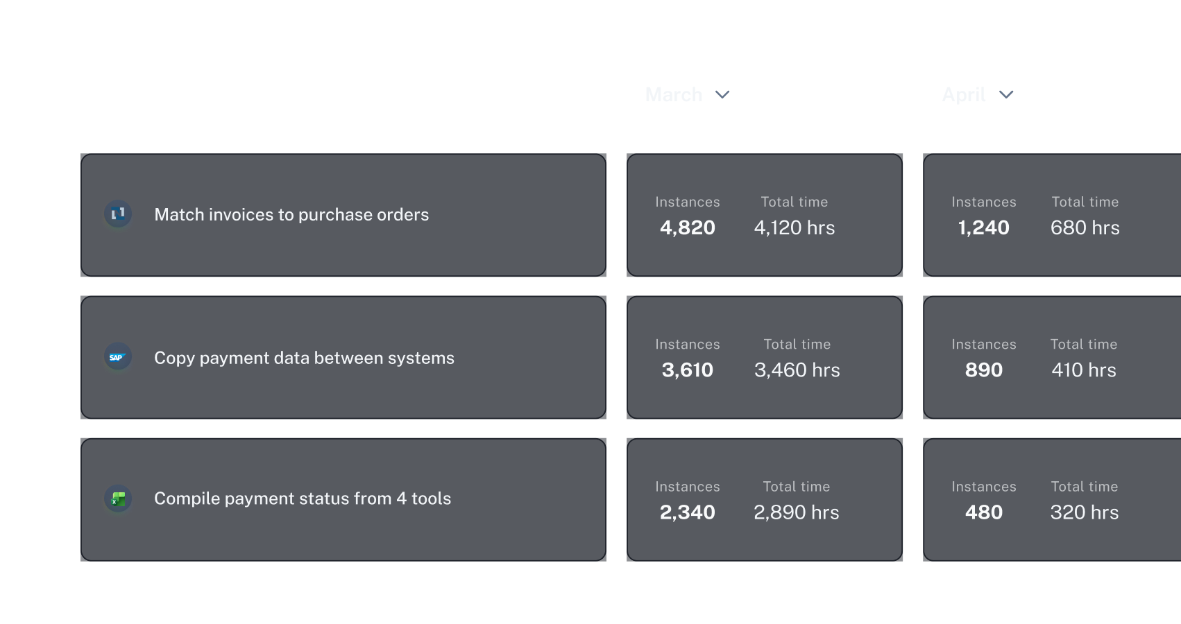 Identify the tasks your teams do regularly, how often they do them, and how long they take — without a single time study.